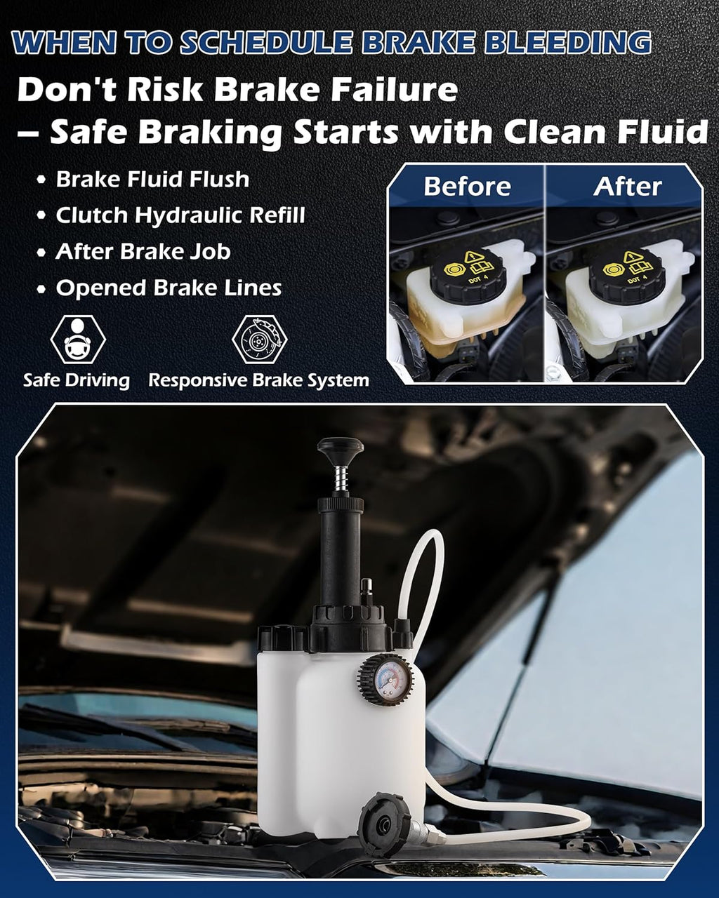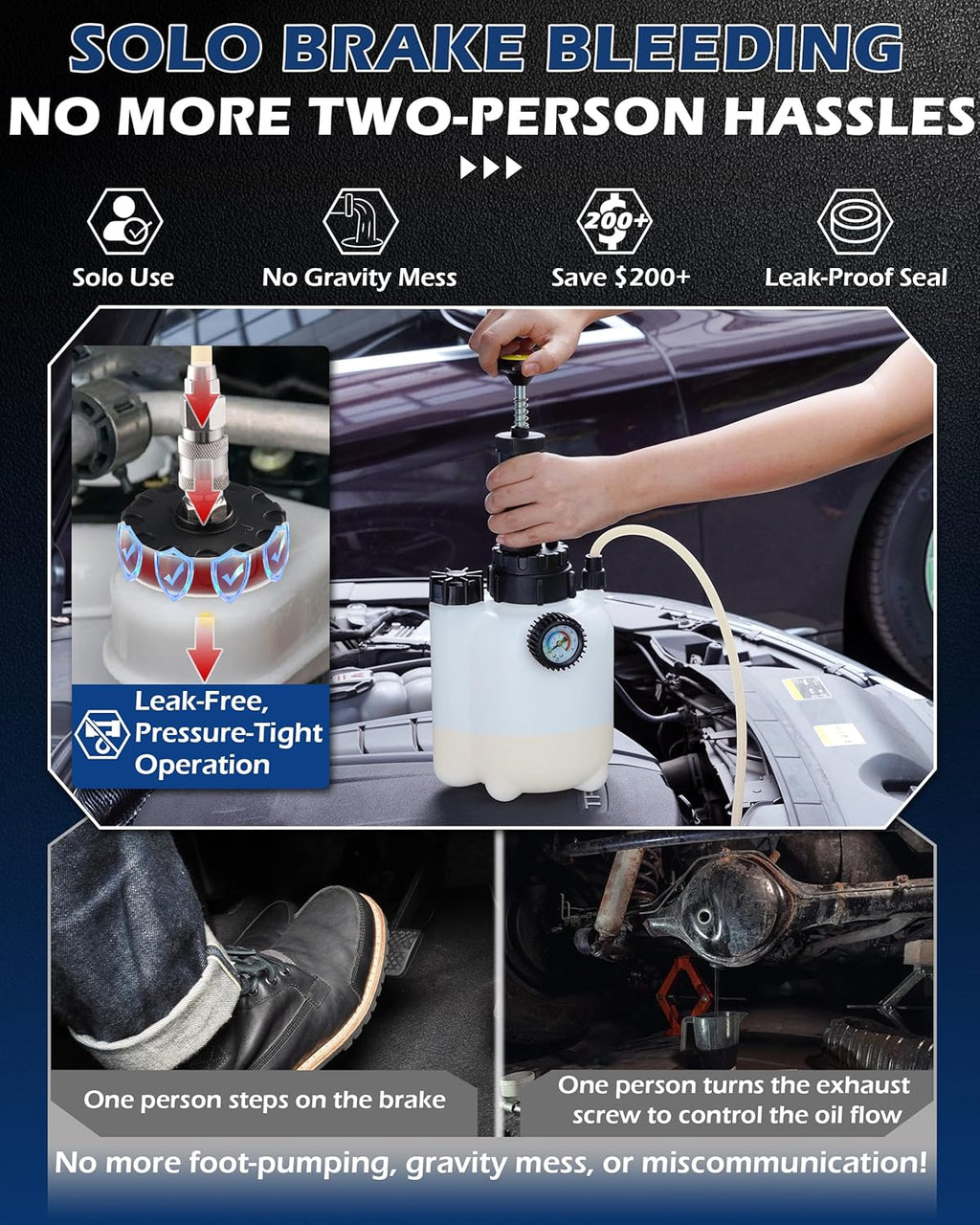- One Man Brake Bleeding: No more shouting instructions or messy oil spills! This one-man brake bleeder effortlessly flushes out old fluid while drawing in fresh oil, clearing trapped air for firmer, faster-replying brakes with every press.
